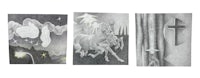 B1G REV OFTEN PAINTS AND ILLUSTRATES ON PAPER MACHE SCULPTURES. HER WORK IS AN OBSERVATION OF GOD, FAITH, AND HUMOR. THROUGH HER WORK SHE SEEKS PEACE WITH DEATH BY RECONCILING TANGIBLE LIFE WITH INTANGIBLE FAITH.